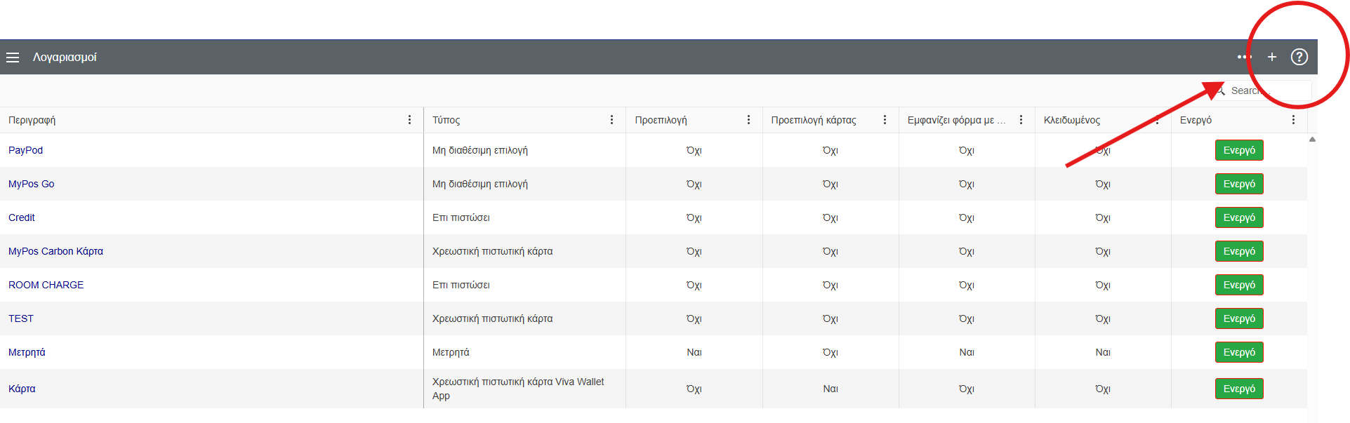 Έπειτα επιλέγουμε στο + πάνω δεξιά για την δημιουργία ενός νέου τρόπου πληρωμής.