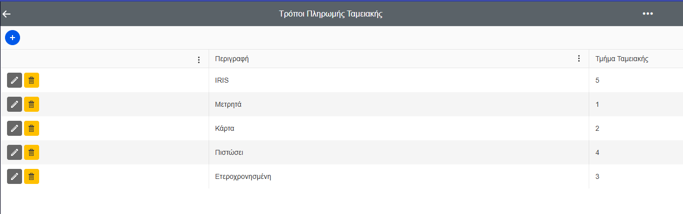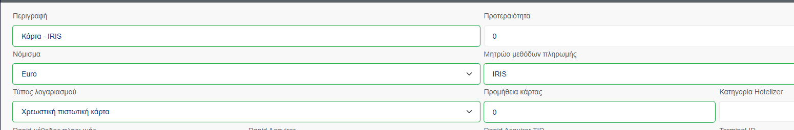- Μητρώο Μεθόδων Πληρωμής: IRIS